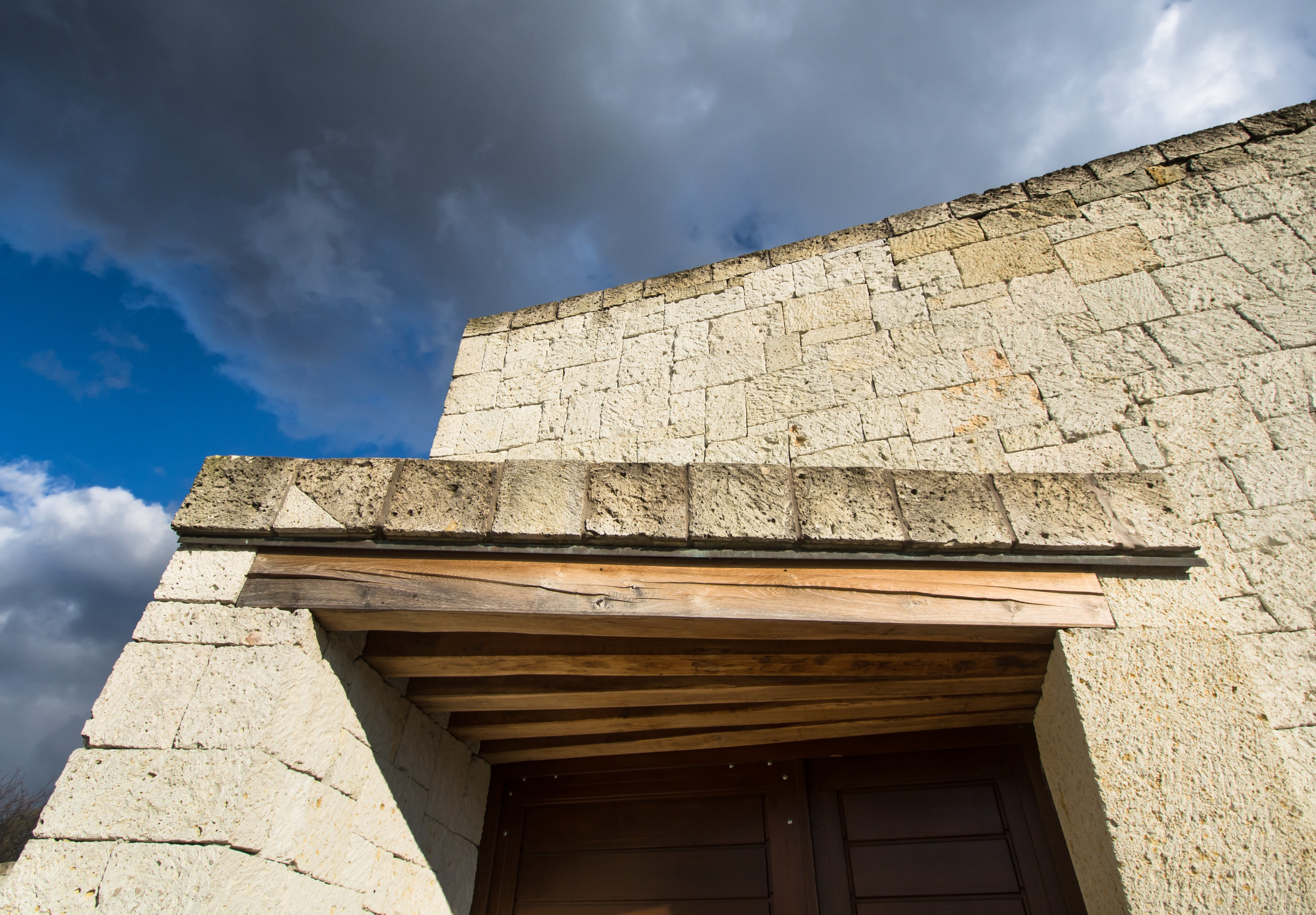 Ebből a földdel fedett világból csak a szőlőfogadó bejárata és a feldolgozás felső szintje emelkedik ki egyfajta bástyaként, utalva a szőlőkben a kihordott kőből épült - bástyának nevezett - kődombokra és az egykori vár bástyáira.